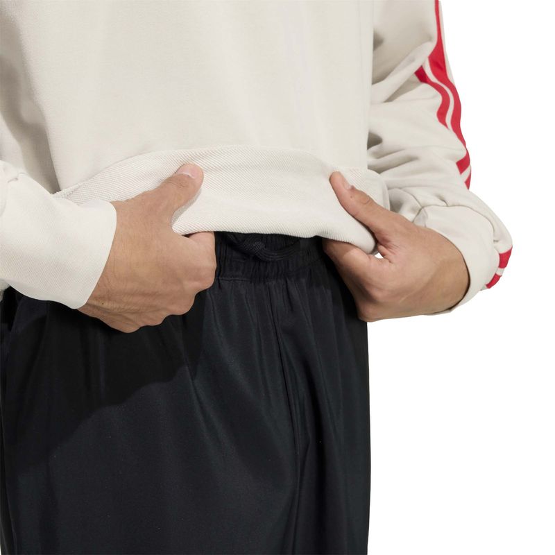 Esta sudadera adidas es la aliada perfecta para tus momentos de descanso. Confeccionada en un tejido de felpa suave al tacto, te brinda la comodidad ideal tanto para pasear por la ciudad como para relajarte en casa. Las 3 bandas a lo largo de las mangas y el discreto logotipo en el pecho refuerzan su esencia deportiva, mientras que los hombros con costura caída favorecen un ajuste relajado y una total libertad de movimiento.