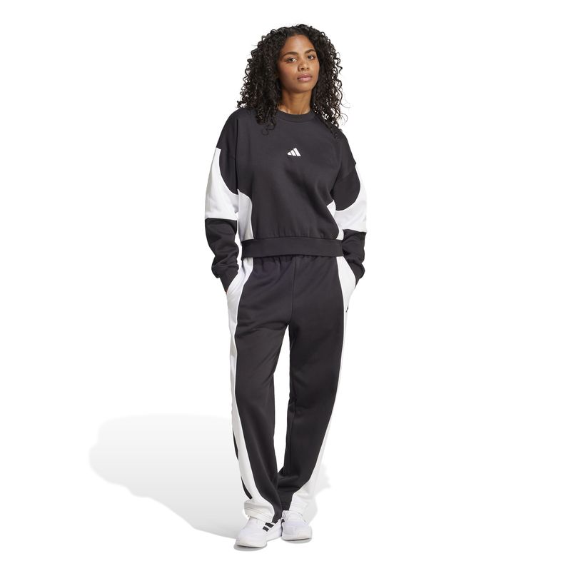Este chándal adidas combina confort excepcional y un estilo casual perfecto para los días de relax. Confeccionado en felpa de algodón suave, ofrece comodidad y libertad de movimiento gracias a su corte holgado, mientras que el diseño con bloques de color añade un toque deportivo y moderno.