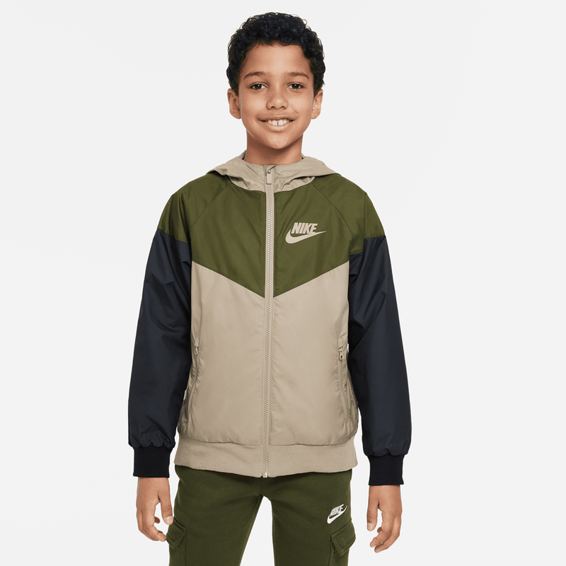 Cuando se juntan la ligereza, un diseño fácil de combinar y el espíritu retro, el resultado es esta increíble chaqueta Windrunner, que cuenta con las líneas de diseño tipo chevron originales. La chaqueta es lo bastante holgada para ponértela por encima de una sudadera de chándal y tiene una capucha con visera para protegerte del viento.
