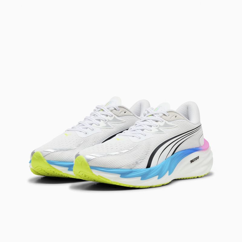 Correr es una experiencia única para cada persona, y así debe ser. Ya sea que busques superar tu marca personal o simplemente disfrutar del camino, las Velocity 4 están hechas para acompañarte en cada zancada. Diseñadas para todo tipo de corredores, momentos y distancias, destacan por su resistencia, rendimiento y capacidad para ir más allá. Las más ligeras de su línea hasta ahora, incorporan una entresuela completa de NITROFOAM™ para una amortiguación reactiva, una malla renovada en el empeine que mejora la transpirabilidad y una suela PUMAGRIP que ofrece tracción superior en cualquier superficie.